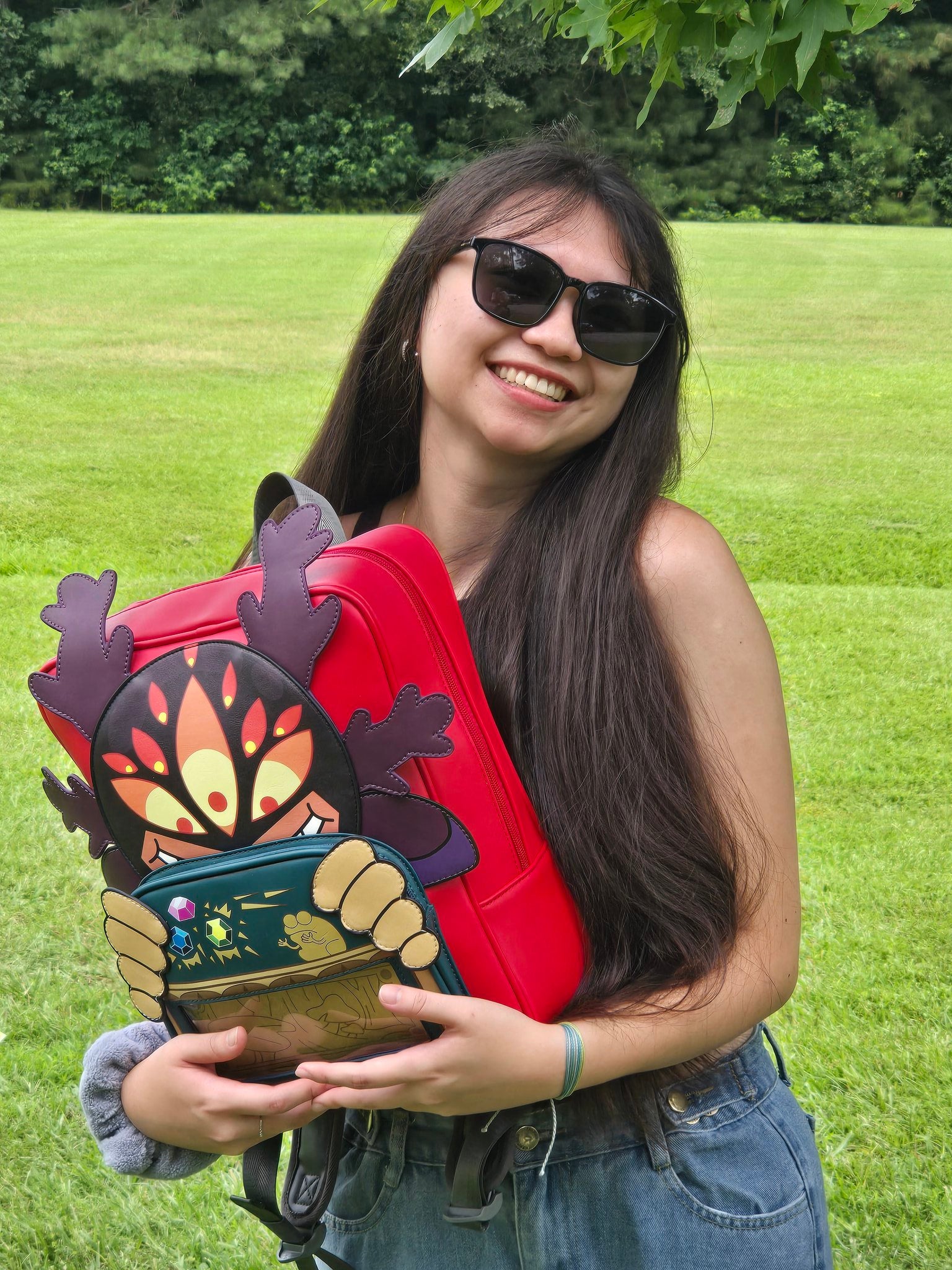 This 28 x 31cm ITA bag contains multiple pockets, a D20 attached to the zipper, a clear pocket to place up to 5 pins or keychains, and of course, a very unique design made with high quality materials!